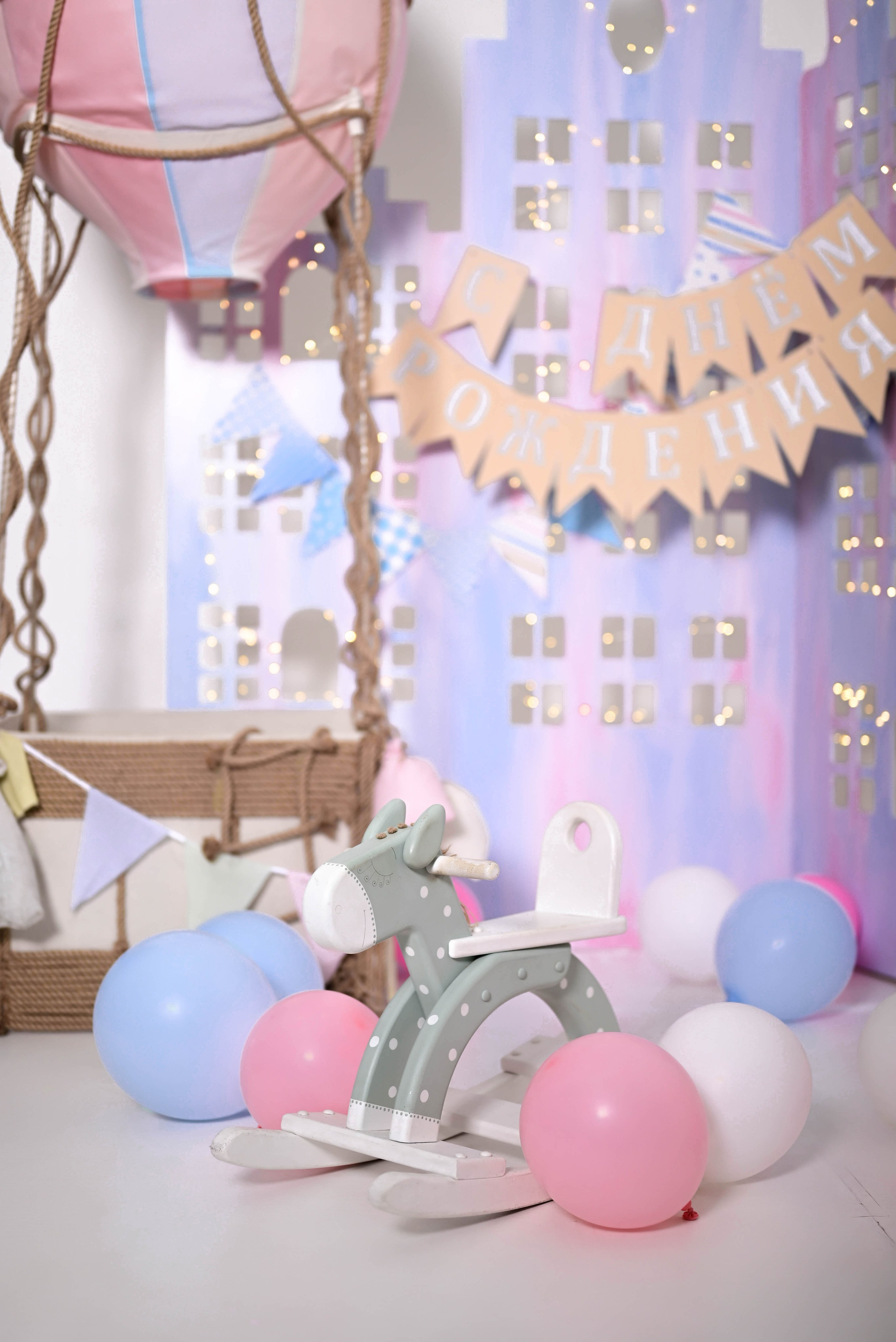 Стильный и изящный зал, который сочетает в себе элегантную и модную гостиную, современную светлую кухню и свадебную цветочную зону. А так же в этом зале расположена циклорама, фоны для фото в стиле «минимализм», детский сладкий уголок и зона для юных байкеров